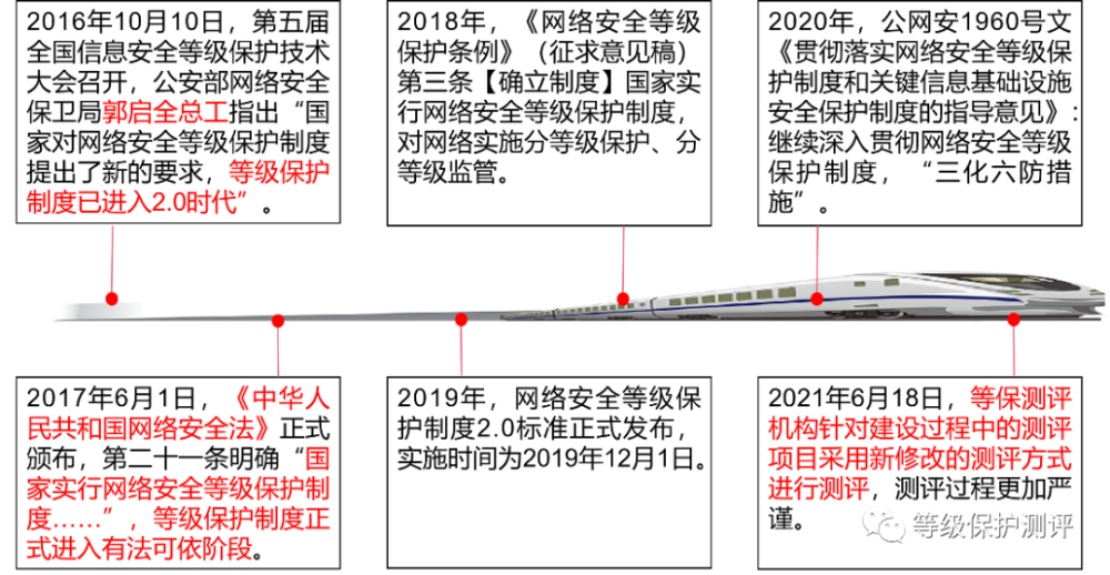 等級保護工作經(jīng)過近二十年的發(fā)展已經(jīng)從1.0階段發(fā)展到2.0階段,從制度上升到法律: